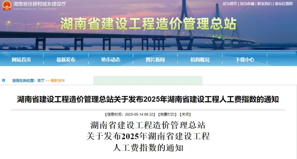 注意!2025年湖南省建設(shè)工程人工費(fèi)指數(shù)發(fā)布,6月1日起執(zhí)行!